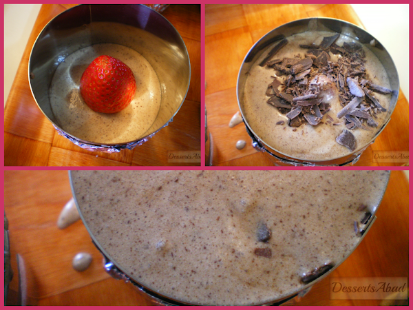 Mezclamos con la otra crema ya fría. Vertemos en los moldes individuales elegidos. En el centro de cada molde añadimos una fresa y cubrimos con más crema. Dejamos que cuaje y ¡listo!