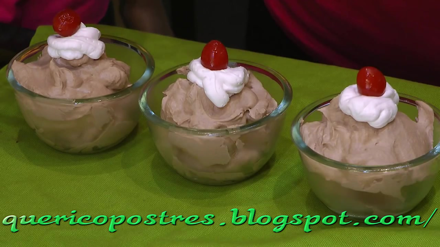 Refrigere por una hora y luego agregarle una cereza y el riquisimo Mousse de chocolate sin huevo está listo para servir.