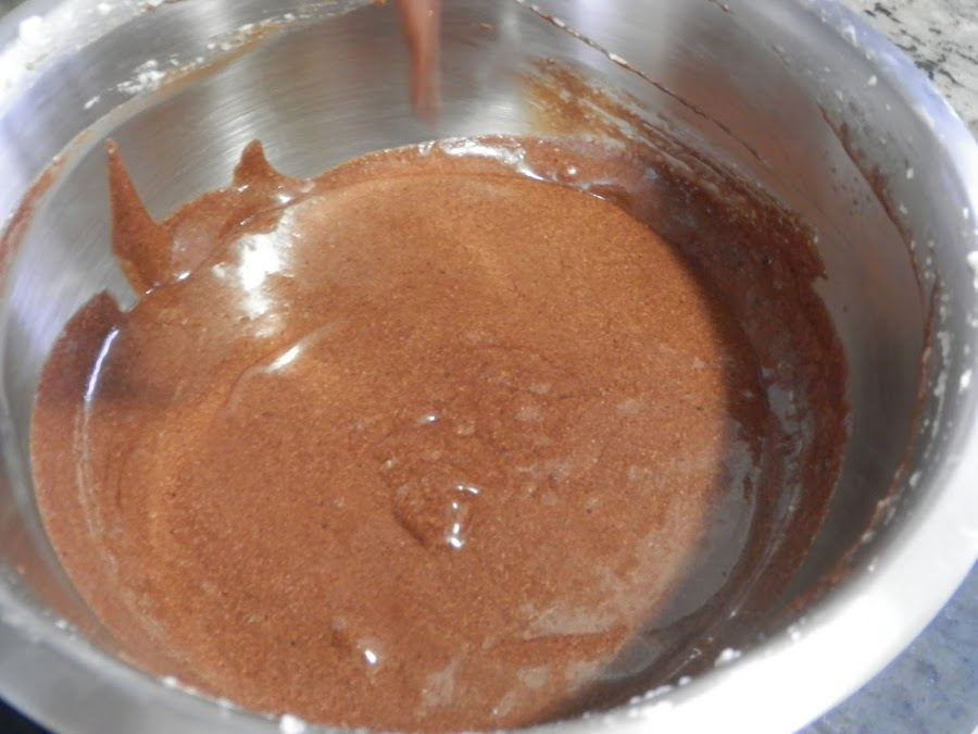 Cuando estén montadas, quita una cucharada del merengue y añádelo a la mezcla de chocolate.