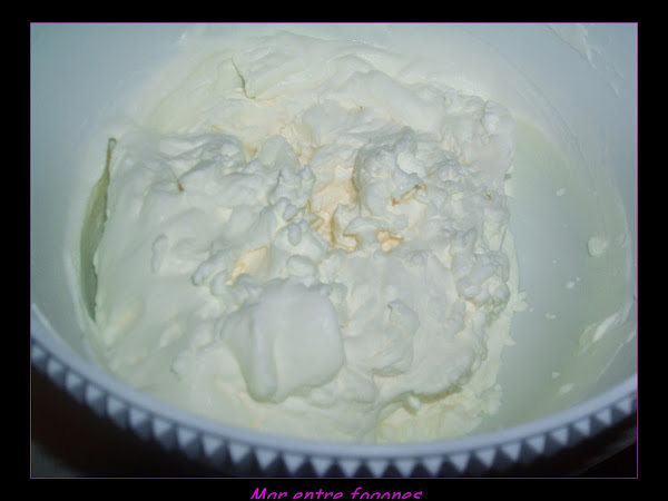Se lo añadimos a a la nata (crema de leche) y el queso que teniamos reservado.