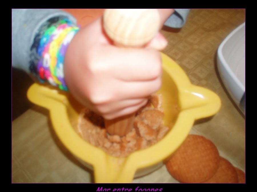 Machamos las galletas en un mortero.