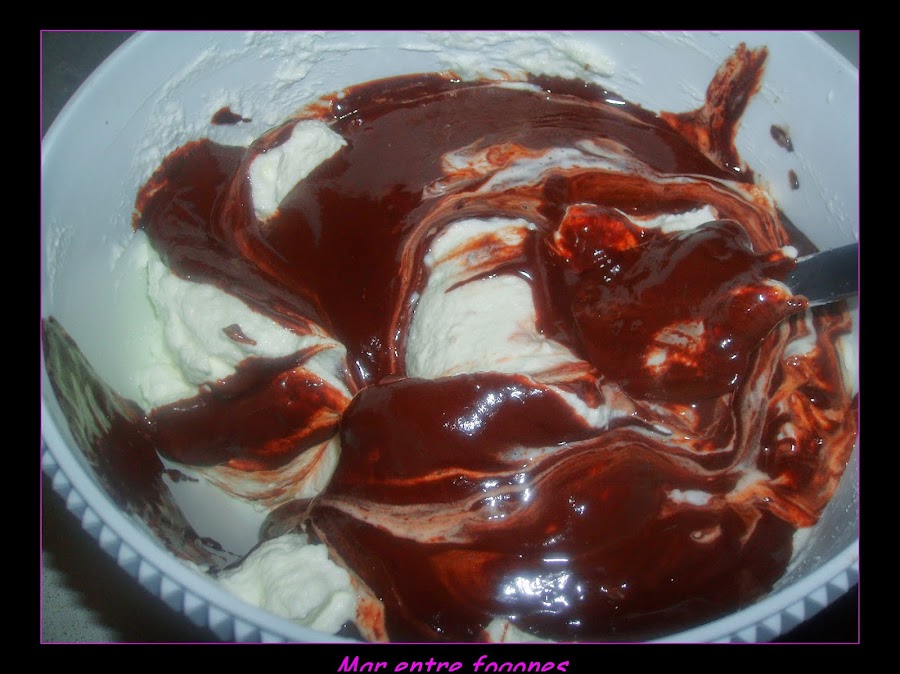 Mientras tenemos el chocolate en el Baño Mª añadimos todo el zumo mientras revolvemos bien.