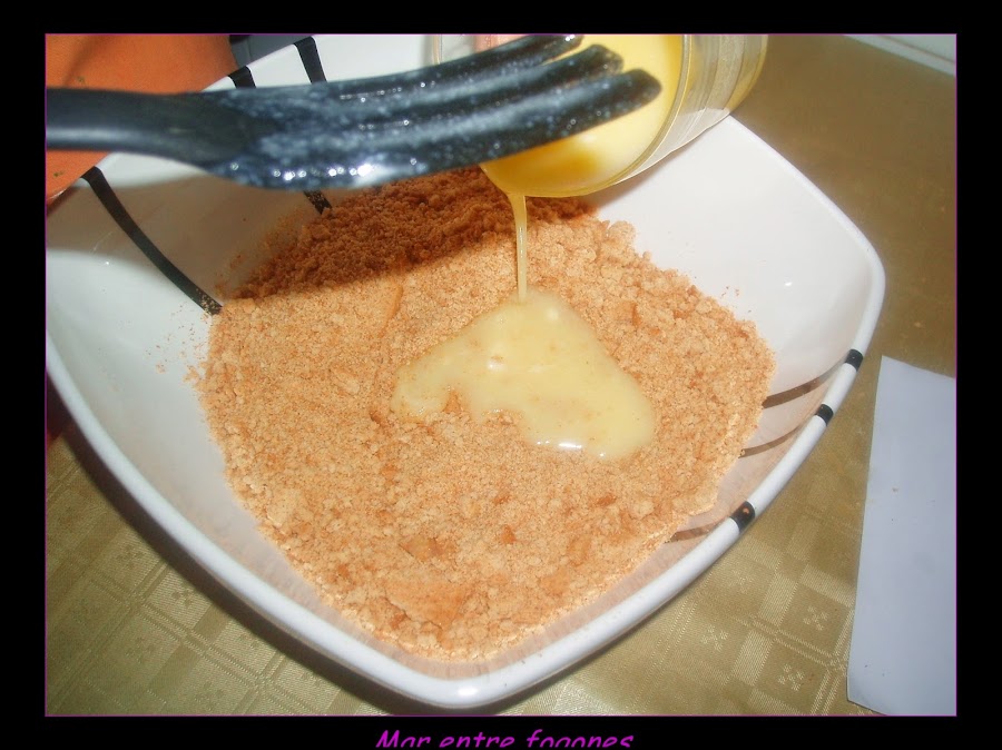 La añadimos a las galletas trituradas.