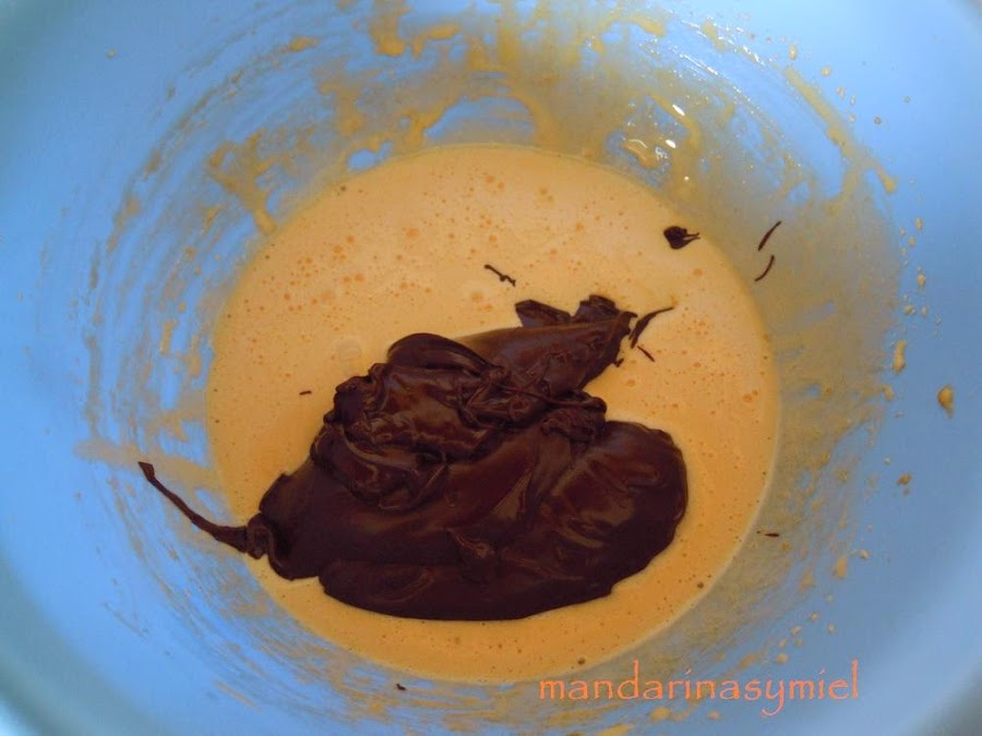 Une las yemas a la mezcla de chocolate sin dejar de remover cuando las vayas echando.