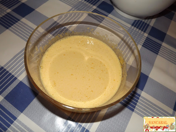 Dejamos enfriar un poco mientras seguimos con la receta, separamos las yemas de las claras y batimos las yemas con el azúcar.