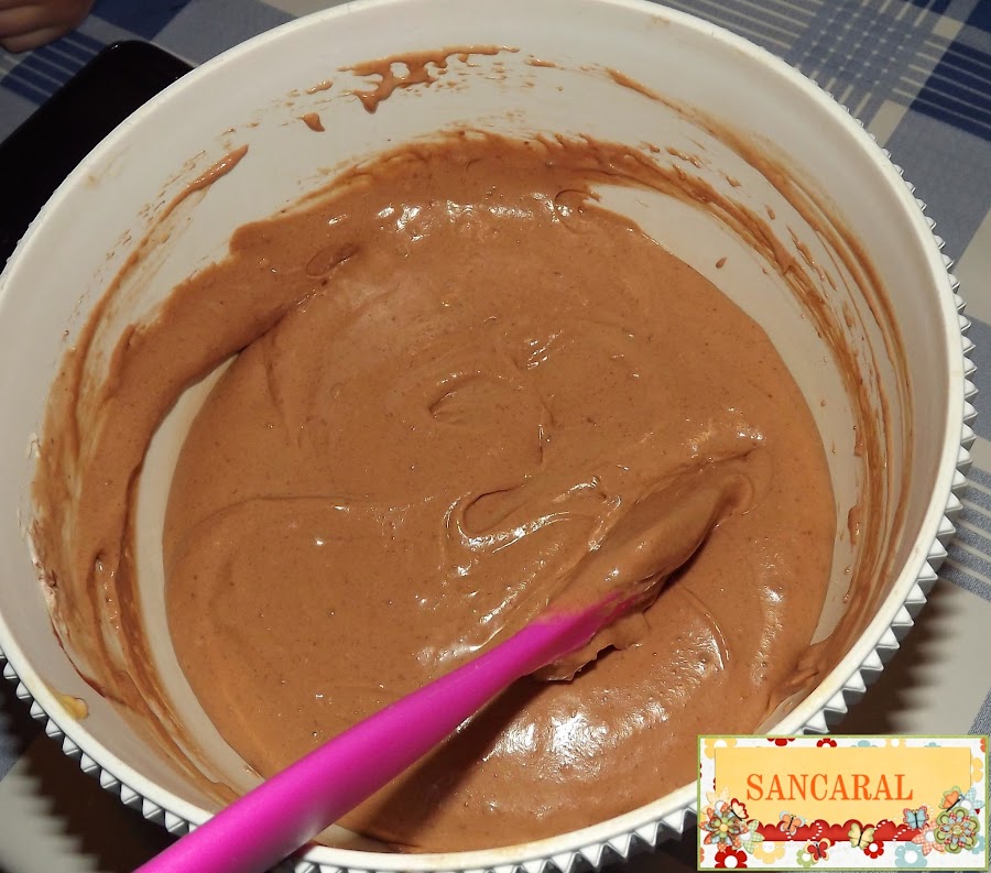 Lo primero que mezclamos es el chocolate con las yemas, mezclaremos bien hasta que estén los dos ingredientes bien integrados.....mezclalo con una espátula, ahora le añadimos la nata (crema de leche)....vuelve a mezclar bien tomate tu tiempo, no hay prisa. Ahora le toca el turno a las claras.....mezcla que te mezcla....