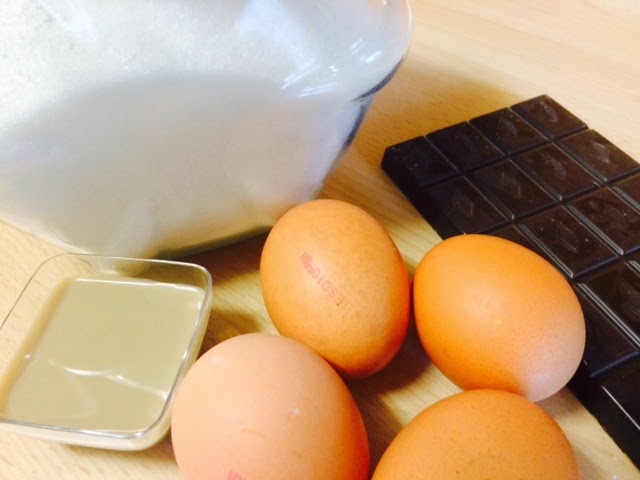 Con una tableta de chocolate de coberturas 4 huevos y 100 gramos de azúcar tenemos este postre tan rico!