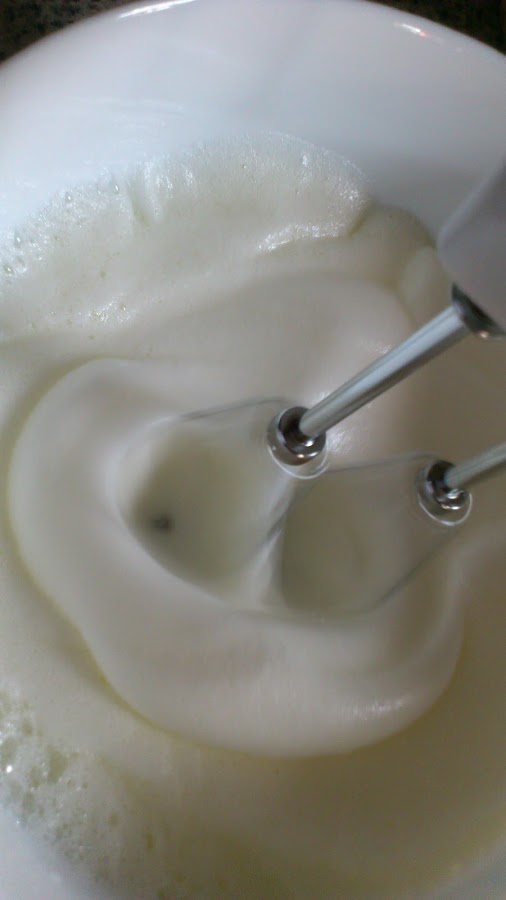 Mientras se enfría la mezcla, se baten las claras a punto de nieve hasta que queden bien consistentes y se van agregando poco a poco, con la ayuda de una espátula, a la mezcla de chocolate.Se remueve todo con mucha suavidad intentando no aplastar las claras ya que serán las que darán la textura de la mousse.