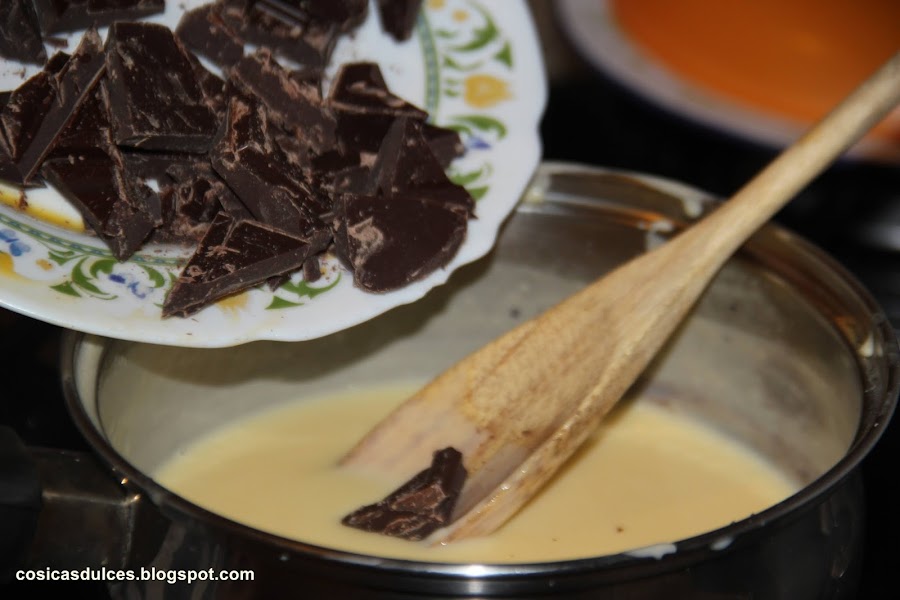 Una vez bien mezclado todo lo volvemos a colocar al fuego hasta que espese. En ese punto tenemos lista nuestra crema inglesa a la que ya fuera del fuego añadiremos el chocolate bien picado y la sal.