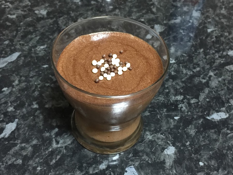 Otra ha sido en una copa pequeña, donde la decoración ha sido con bolitas de chocolate.