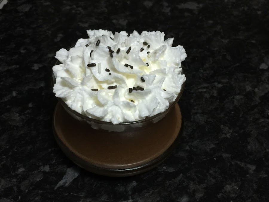 En una ha sido en un bol pequeño que he decorado con nata montada (crema de leche) en el momento de servir.