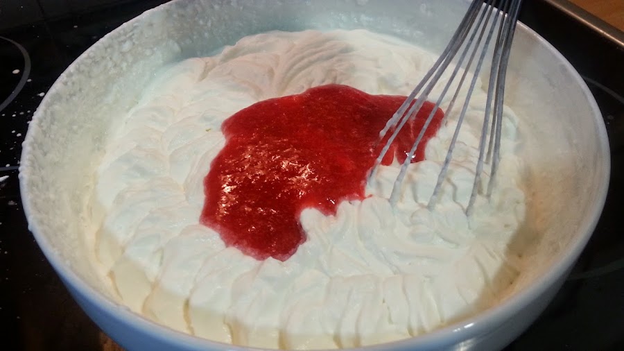 echamos y batimos hasta que este casi toda la fresa echada