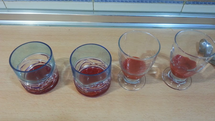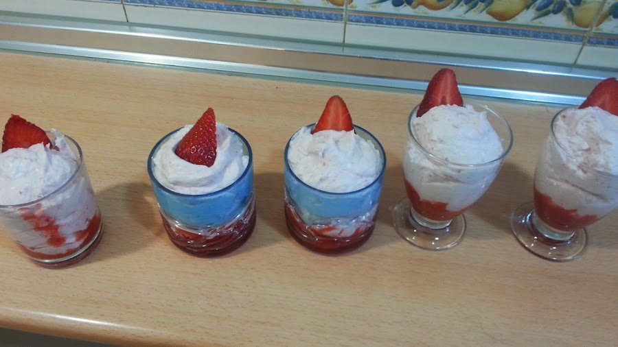 y digo casi toda por que en los vasos en el fondo vamos a echar un poco de la fresa triturada