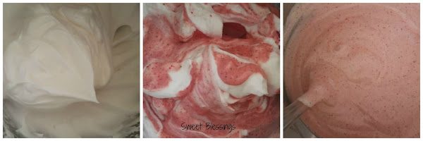 Batimos las claras a punto de nieve y agregamos los otros 50 gramos de azúcar, luego le incorporamos la mezcla de las fresas con movimientos envolventes y suaves.