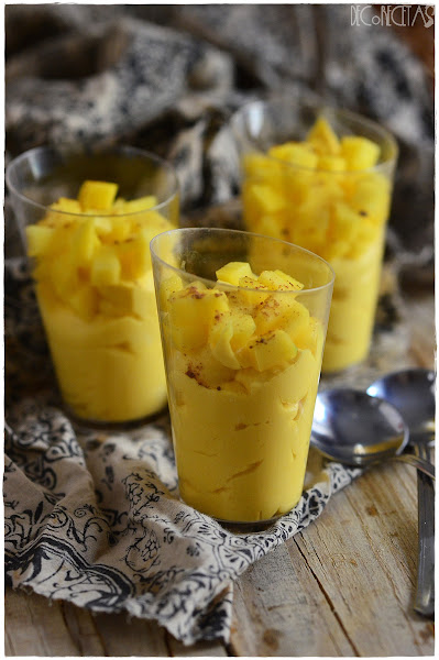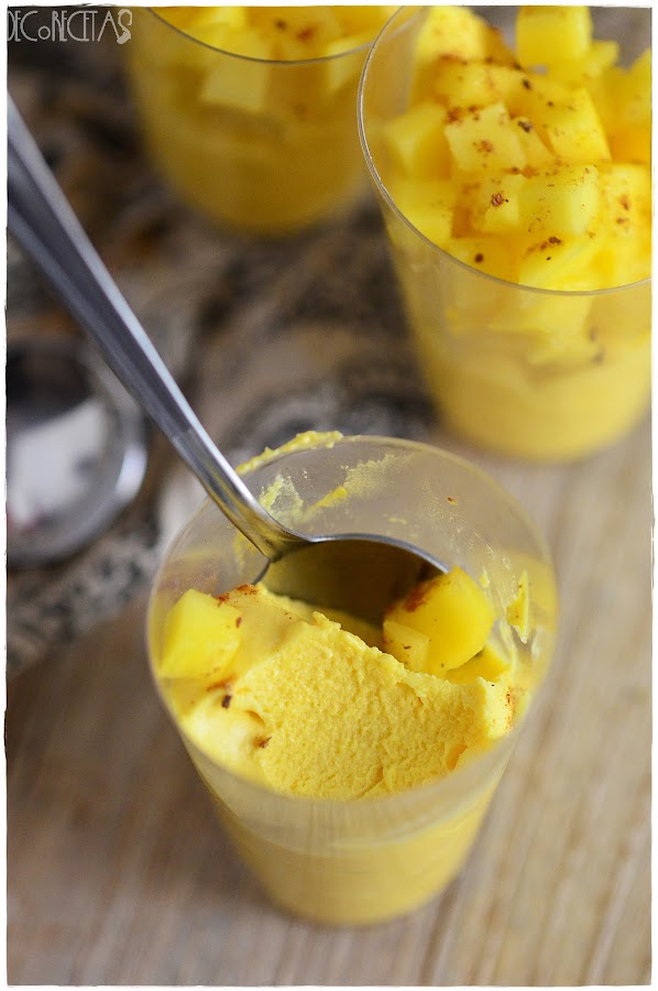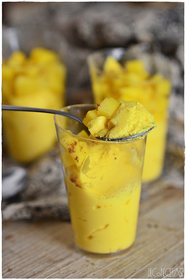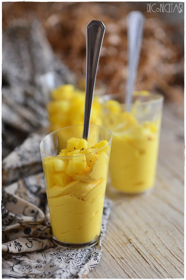 Para terminar la presentación, añadí unos trocitos de mango y canela olida por encima