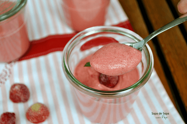 Esta Mousse aunque lleva gelatina no se puede desmoldar, es para comerla dentro del vaso. Queda muy suave tanto de sabor como de color ya que lleva nata montada (crema de leche).
