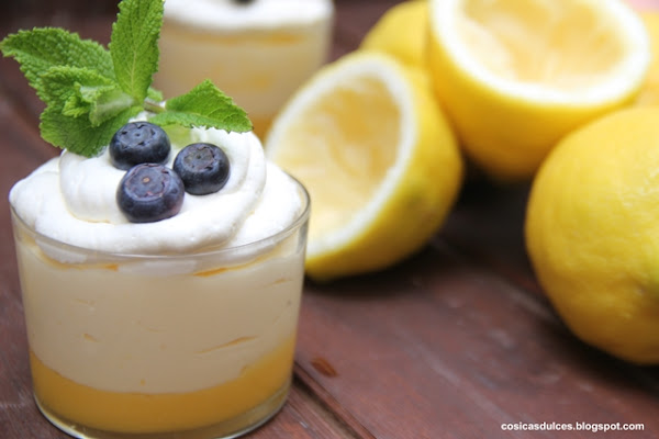Añadimos un par de cucharadas de lemond curd en el fondo de los vasitos de servir.