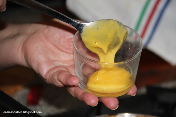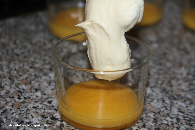 Rellenamos los vasos que teníamos reservados (con el lemond curd en la base) con el mousse que acabamos de preparar.
