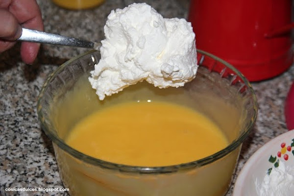 Añadimos a la mezcla anterior 200 mililitros de nata (crema de leche) que habremos montado bien firme.