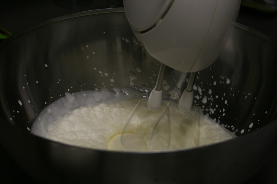 Batimos con las barillas los dos bricks de nata (crema de leche) para montar, es muy importante que estos bricks estén fríos de nevera, la nata (crema de leche) se montara mejor y más rápido.