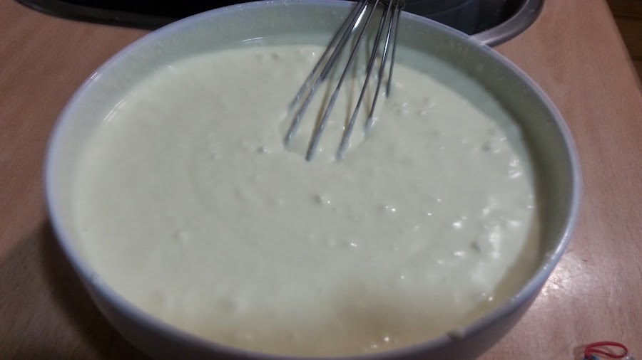 echáis las claras en la mezcla de los huevos, la leche condensada y el zumo y muy despacito, con movimientos envolventes para que no baje mucho las claras las vais ligando