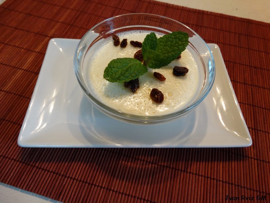 Adornamos con un poco de hierbabuena y uvas pasas.