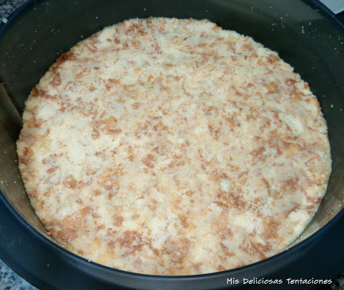 Desmenuzamos los bizcochitos y los ponemos sobre el molde que usaremos.