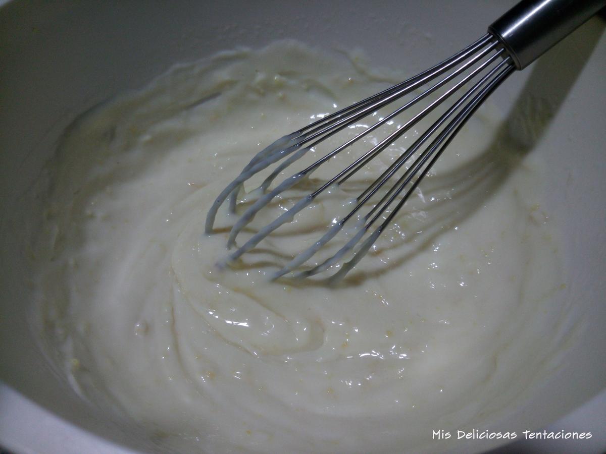 En otro bol ponemos la leche condensada, añadimos 100 ml. del jugo de limón y la ralladura del limón y removemos bien.