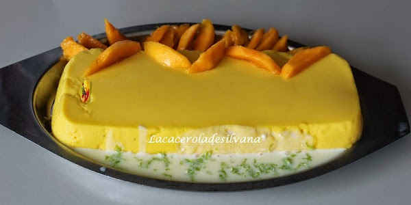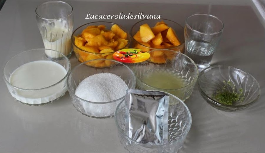Licuar el mango con la leche, el azúcar, la ralladura de limón y el jugo de naranja, luego disuelve la gelatina en agua caliente y vierte en la licuadora poco a poco, seguidamente agrega la crema de leche.