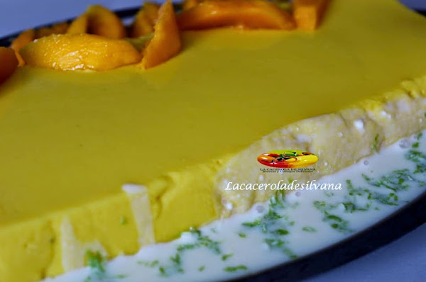 Una vez este listo, desmolda con cuidado, para acompañar el mousse puedes hacer una deliciosa salsa de crema de leche con leche condensada agregando las mismas cantidades y para darle un toque especial agregar una cucharadita de ralladura de alguna fruta cítrica y decora con láminas de mango.