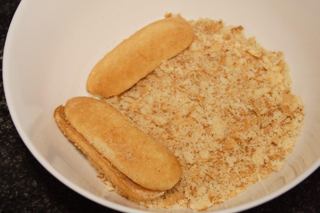 En un bol mediano desmigamos bien los bizcocho de soletilla, echamos el cacao en polvo y mezclamos bien.