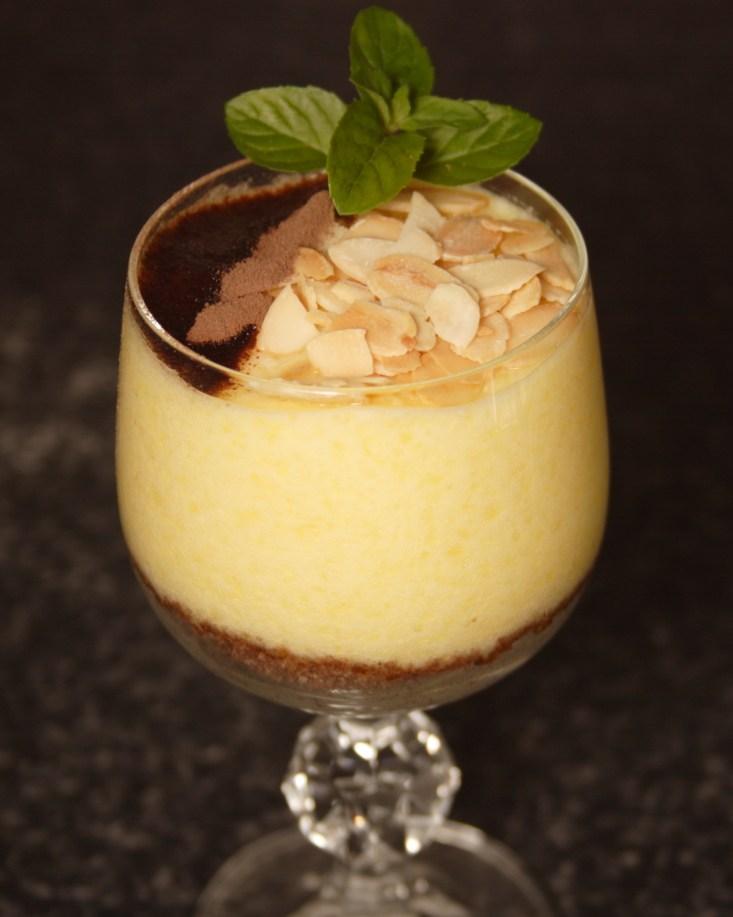 Almendras fileteadas, hojas de menta, cacao en polvo, virutas de chocolate… Para decorar.
