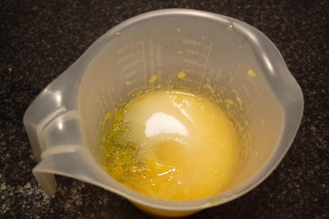 Añadimos la ralladura y el zumo de la lima, el azúcar y la gelatina diluida. Seguimos triturando hasta que todos los ingredientes queden bien integrados. Reservamos.