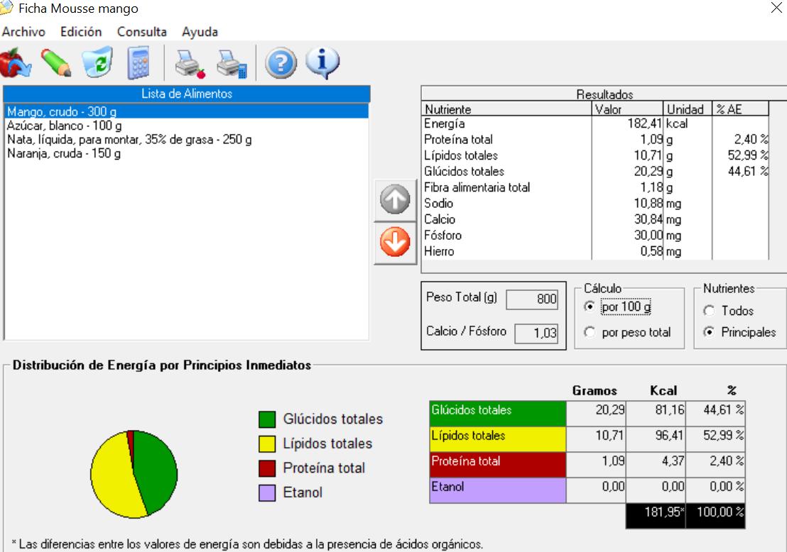 DIFERENCIA DE CALORIAS MOESSE MANGO CON NATA (crema de leche) Y FICHA DEL M. MANGO CON CLARAS