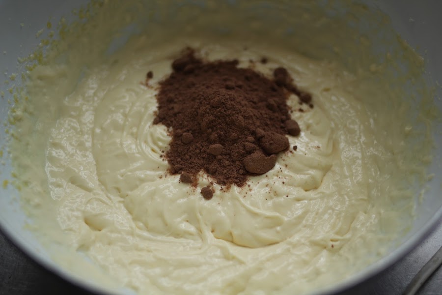Incorporar el queso mascarpone y e integrar bien. Agregar el cacao amargo y unir bien todos los ingredientes.