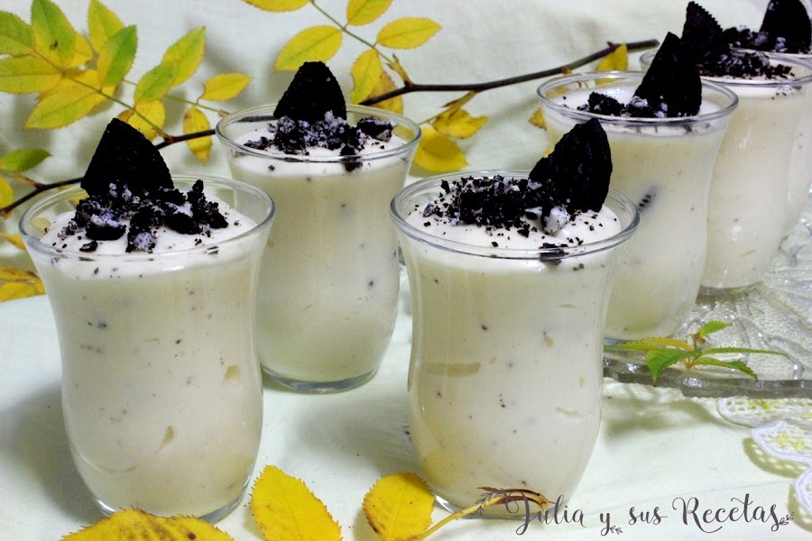 Lo repartimos en copas y las adornamos con media galleta por encima y algunas molidas.