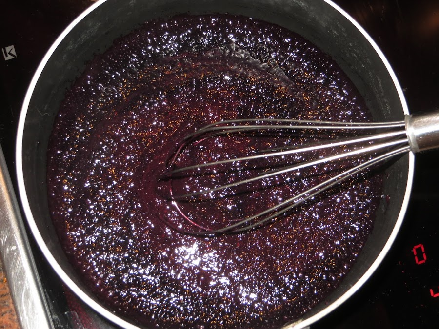 Pelar la manzana y cortarla en trozos pequeños y triturarla junto con las moras en la batidora. Poner en un cazo a fuego medio-bajo durante diez minutos. Mientras ponemos las hojas de gelatina en agua unos minutos para que se ablanden. Cuando retiremos el cazo del fuego añadimos las láminas de gelatina y removemos para que se deshaga.