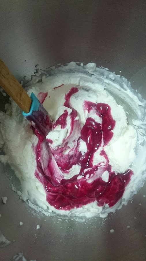 Montamos la nata (crema de leche) hasta que esté firme. Nos aseguramos que esté bien fría. Comprobamos la temperatura de nuestro sirope. Lo agregamos una vez esté tibio. Si no lo está reservamos la nata montada (crema de leche) en la nevera. Mezclamos con movimientos envolventes. Una vez la textura esté uniforme lo repartimos en vasitos. Dejamos enfriar unas horas. A continuación templaremos la gelatina que teníamos preparada y añadimos a nuestro postre. Dejamos reposar unas horas más y decoramos con moras.
