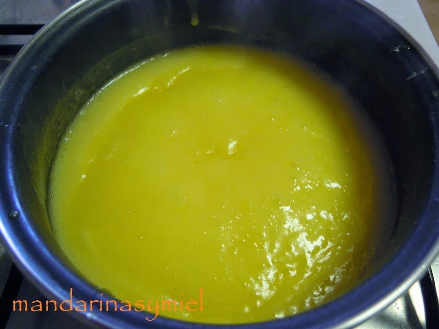 Ponlo todo junto en una cazuela al fuego, calientalo hasta que espese.