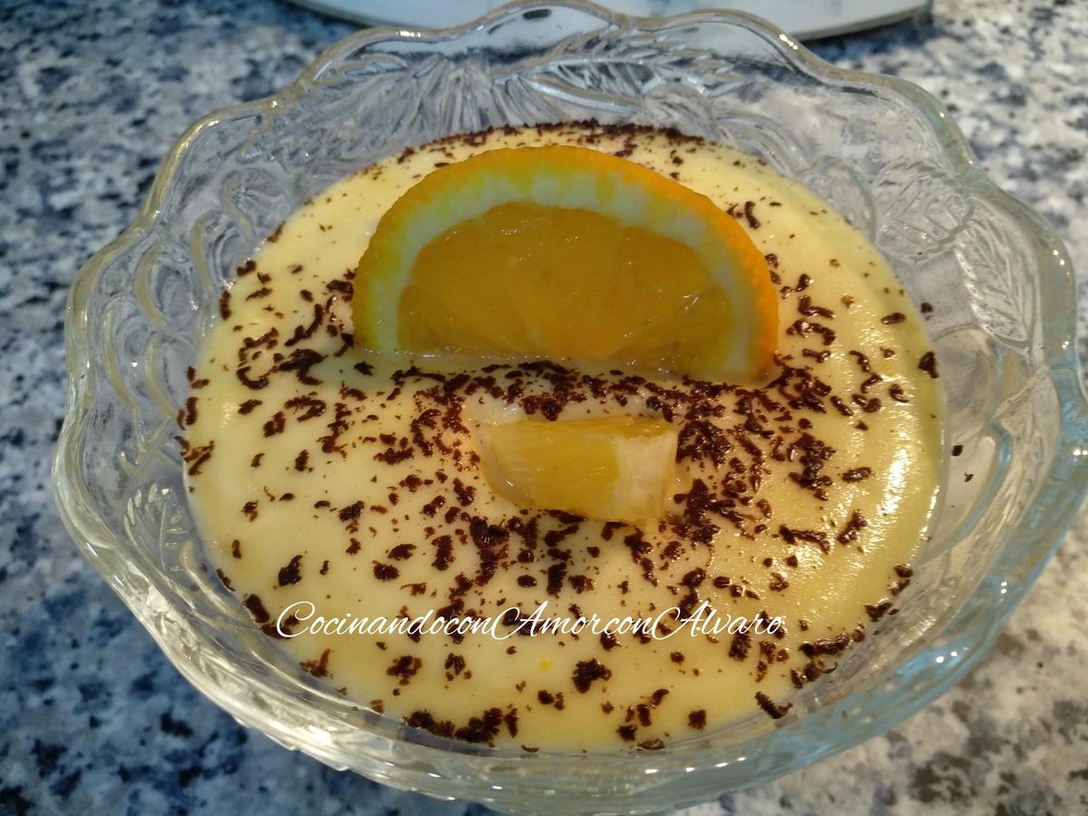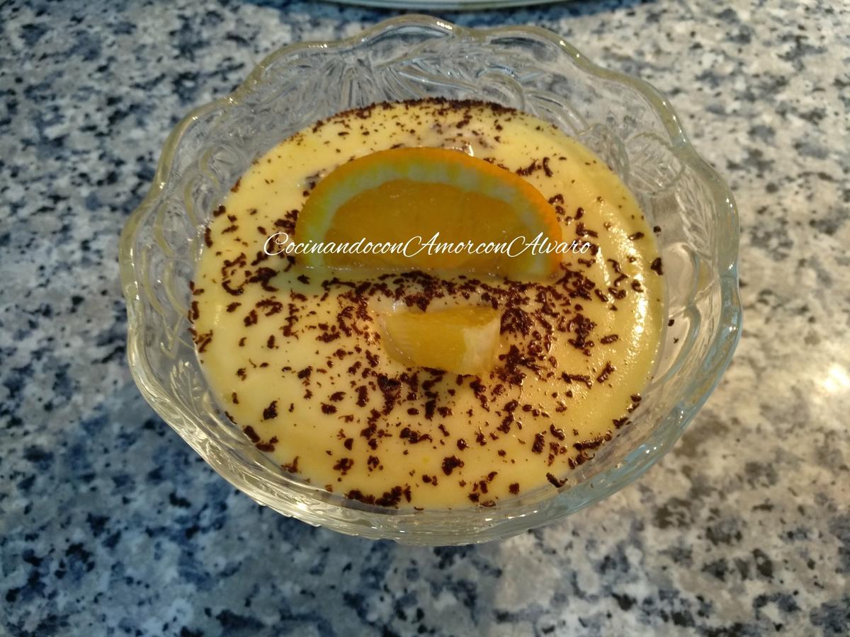 Para la decoración, podemos poner virutas de chocolate, y rodajas de naranja, con un poco de menta.