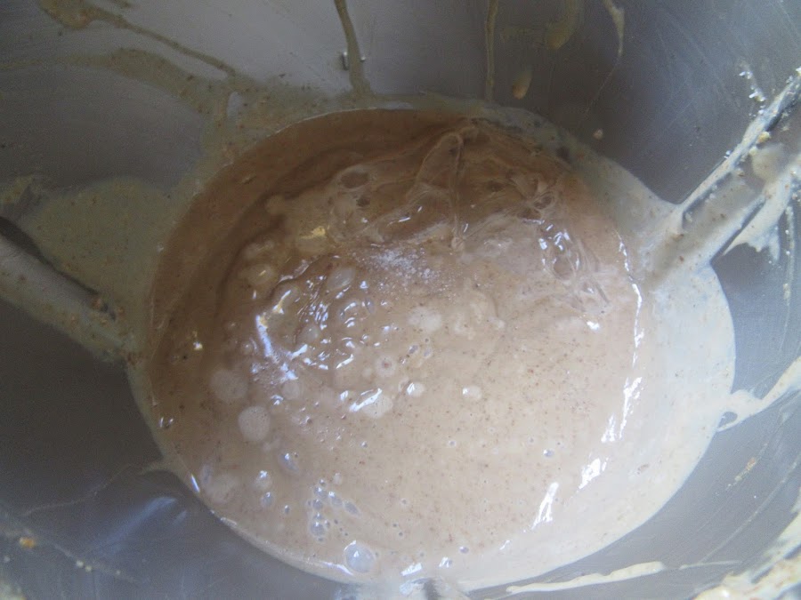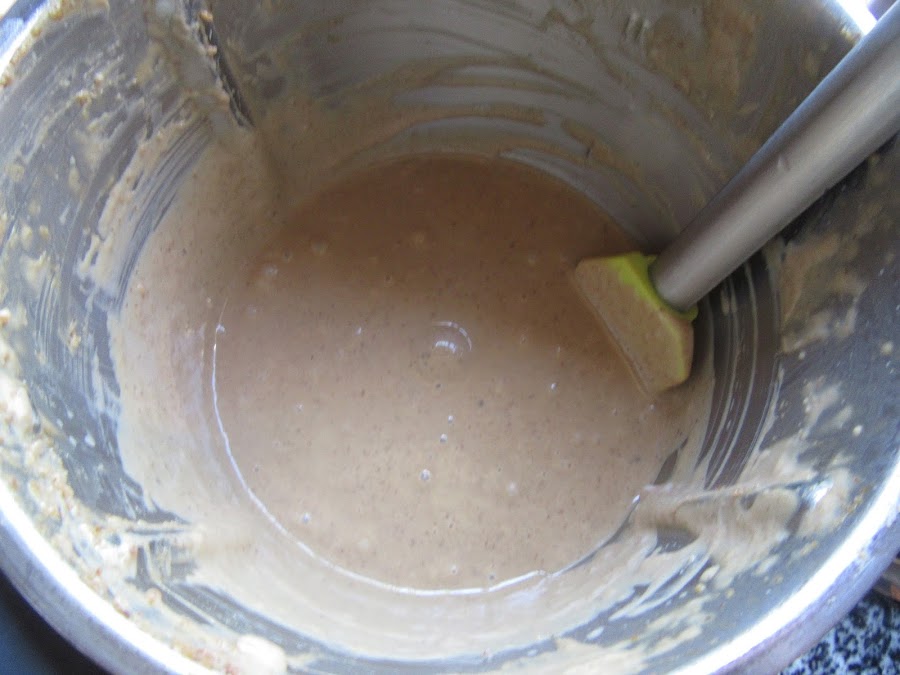 2- Moler las nueces con una picadora. Llevar a un cazo. Añadir la leche, huevos, azúcar y maizena, y triturar con el turmix. Y a fuego bajo removiendo removiendo hasta que espese, sin que llegue a hervir. Mientras, remojar la gelatina en agua fría 5 minutos.
