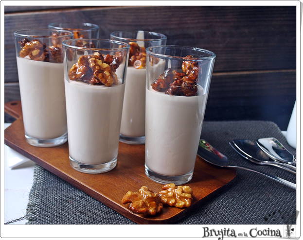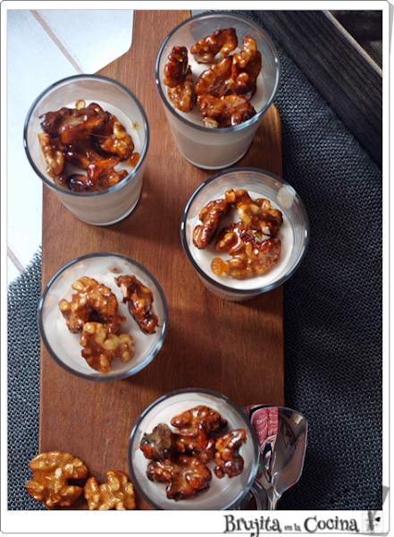 Todo surgió porque mi suegra está en esa lucha con el colesterol y es muy golosa y claro se ha quitado todos los dulces, así que cuando vi este brick en mi Disfrutabox se me encendió un bombilla, recordé las copas de nueces con nata (crema de leche) que tomaba allá por mi juventud en una restaurante en mi city y bueno este es el resultado.