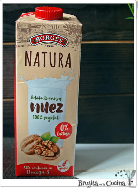 La he preparado con la bebida natura de nueces de Borges, la verdad es que no soy yo muy de leches de avena, arroz, soja,... bueno ya me entendéis pero esta me ha gustado mucho, tiene un sabor peculiar a nueces y me recuerda (salvando las distancias) a la horchata.