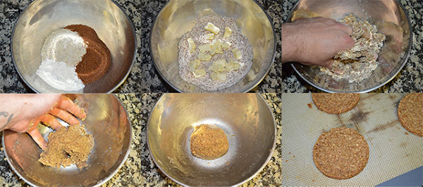 100 gr de harina, 100 gr de azúcar moreno, 100 gr de mantequilla, 100 gr de avena.