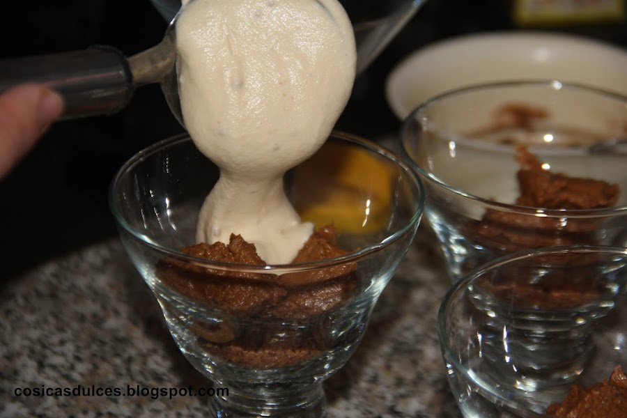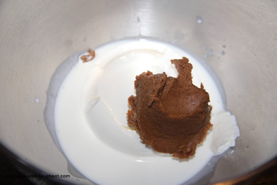 Por otro lado batimos el mascarpone junto a la crema de speculoos y 100 mililitros de nata (crema de leche). Reservamos.