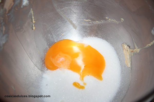 Comenzamos batiendo las yemas junto a los 150 gramos de azúcar hasta obtener una crema muy espumosa que reservaremos.