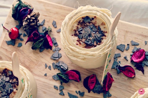 Antes de servir espolvoreamos un poquito de cacao y un poquitín de chocolate rayado { totalmente opcional }