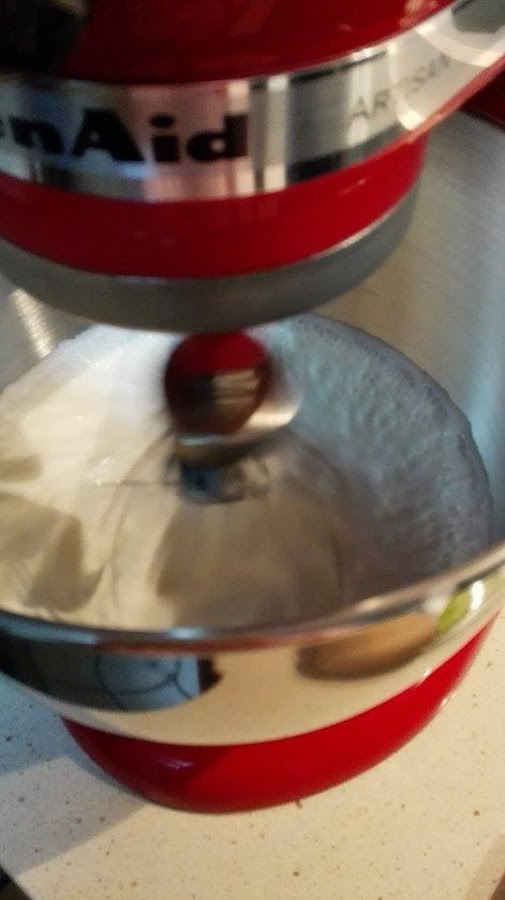 Montamos nuestra nata (crema de leche) (por cierto, estas Navidades me han traído un regalito muy bueno con el que estoy super feliz mi KITCHENAID!!!!, como podéis ver en la foto, es una maravilla, cada día me deja más loca).