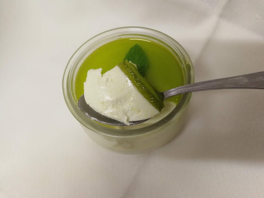 UNA PANACOTA DE YOGUR GRIEGO CON AOVE. En este caso la gelatina va en la parte de arriba.