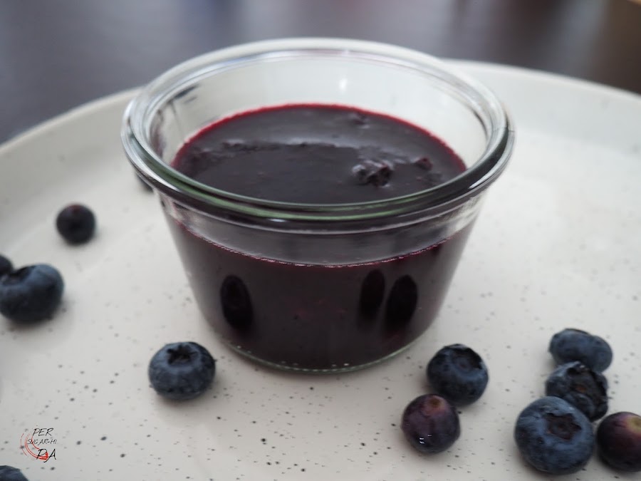 Colocar un cazo al fuego con los arándanos y el azúcar. Calentar y, cuando empiecen a estar blandos, remover e ir chafándolos con unas varillas. Cocer durante 5 minutos aproximadamente, hasta que tengan una textura semi líquida con pequeños trocitos de fruta.